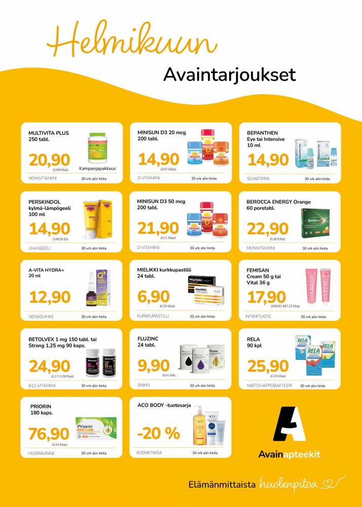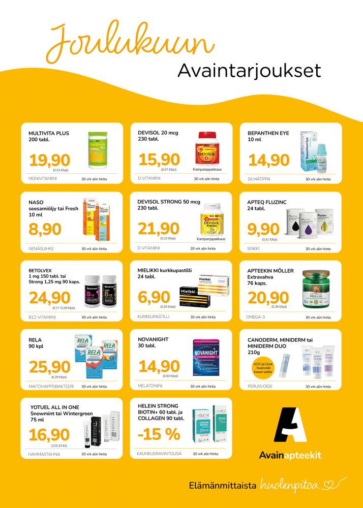 Lähetämme tarvittaessa uusintapyynnön toimitetuista eResepteistä terveyskeskukseen. Palvelu on maksuton Avainasiakkaalle. Huomioithan, että kaikkia reseptejä ei voi uusia sähköisesti apteekin kautta.